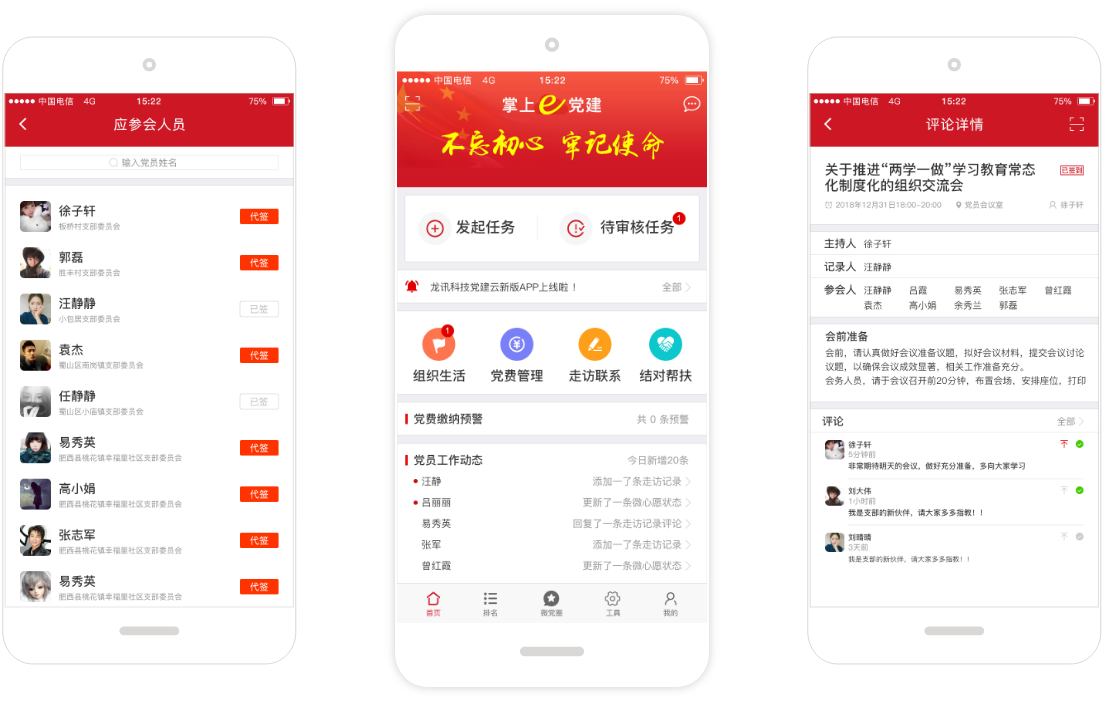 龍訊積極響應(yīng)國家號(hào)召,深入解讀《規(guī)劃》要義,理解最新政策精髓,全新升級(jí)發(fā)布“智慧黨建云平臺(tái)”,運(yùn)用最新互聯(lián)網(wǎng)和信息化技術(shù),創(chuàng)新完善“智慧黨建”管理工作系統(tǒng),助力全國各級(jí)黨組織有效加強(qiáng)黨務(wù)管理、提升服務(wù)群眾水平、強(qiáng)化大數(shù)據(jù)分析能力,擴(kuò)大了黨在互聯(lián)網(wǎng)應(yīng)用領(lǐng)域的數(shù)字化影響力。同時(shí),該平臺(tái)已經(jīng)成功服務(wù)于全國眾多黨政機(jī)關(guān)和企事業(yè)單位,成為廣大黨員和黨群工作者了解黨群信息、交流黨群建設(shè)經(jīng)驗(yàn)、研討學(xué)習(xí)黨群建設(shè)理論的重要載體,以及群眾參與黨的建設(shè)、密切黨群關(guān)系的重要途徑。